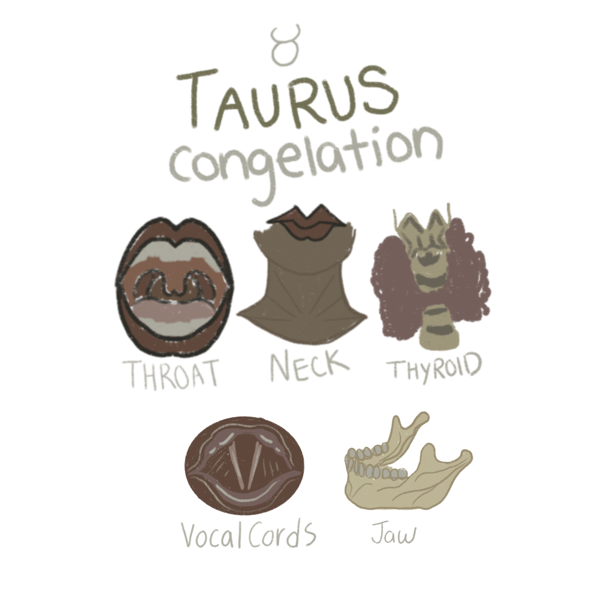 Taurus rules the throat, neck, vocal cords, jaw, and thyroid. It corresponds to the alchemical process of Congelation, the thickening or solidifying of spiritual substance. This is the stage where something fluid begins to take form. Taurus governs how values become physical, how truth becomes voice, how energy becomes embodiment.
