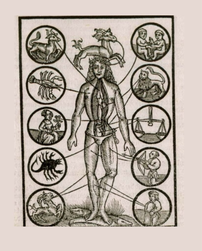 Homo Signorum: a visual key to the zodiac’s rulership over the human form used primarily in medieval medicine and astrology.
